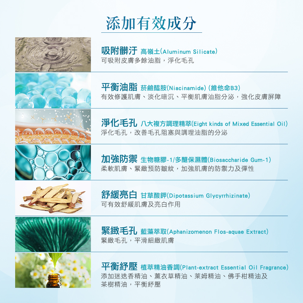 用途:深層淨化、緊緻毛孔、平衡油脂分泌