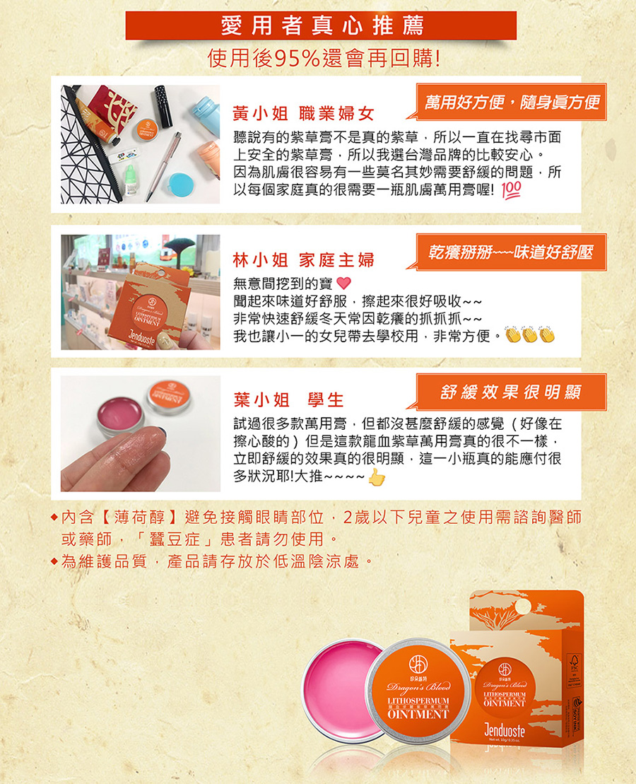 商品名稱:龍血求麗紫草萬用膏10g