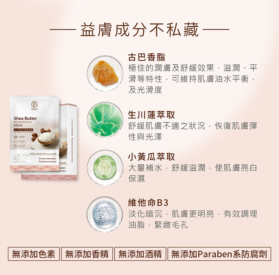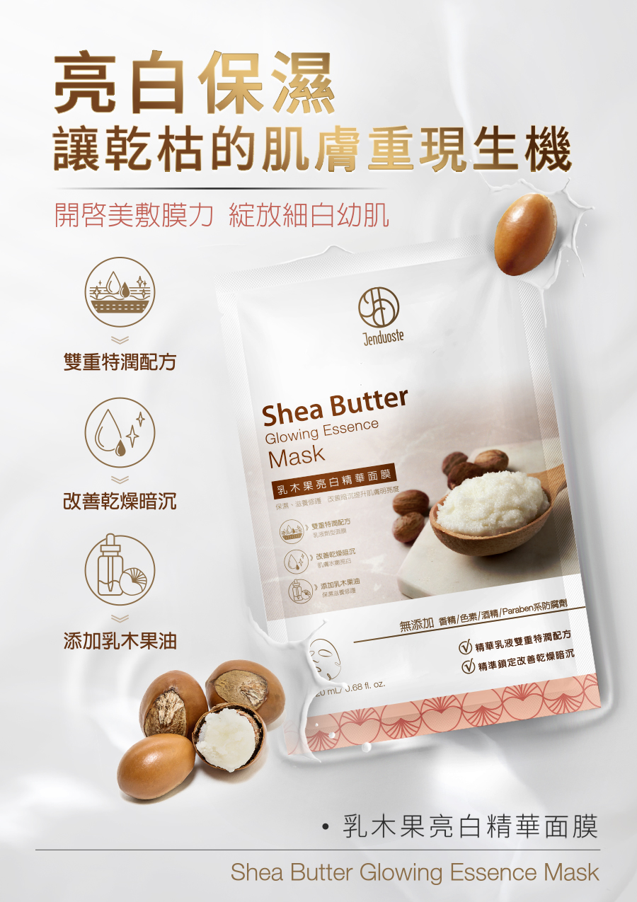 品名:乳木果亮白精華面膜22mLx5片/盒