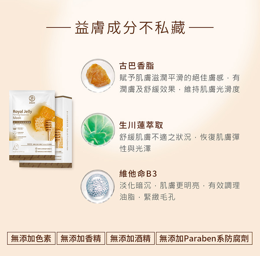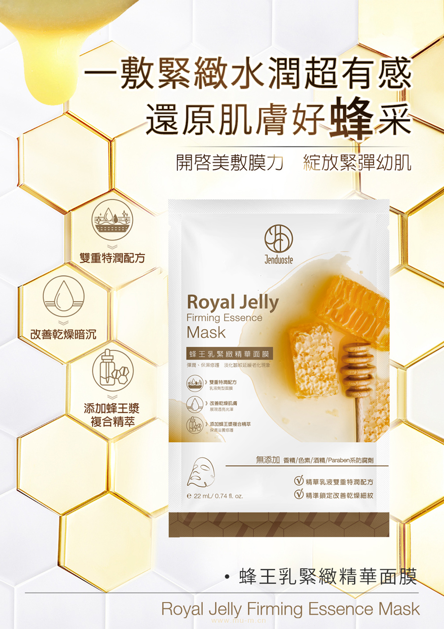 品名:蜂王乳緊緻精華面膜22mLx5片/盒
