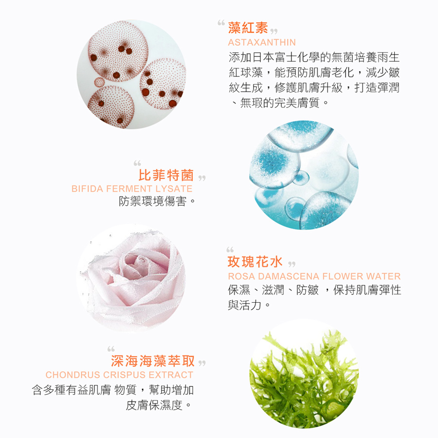 用途:賦活肌膚、淡化皺紋,肌膚水嫩緊緻有光澤