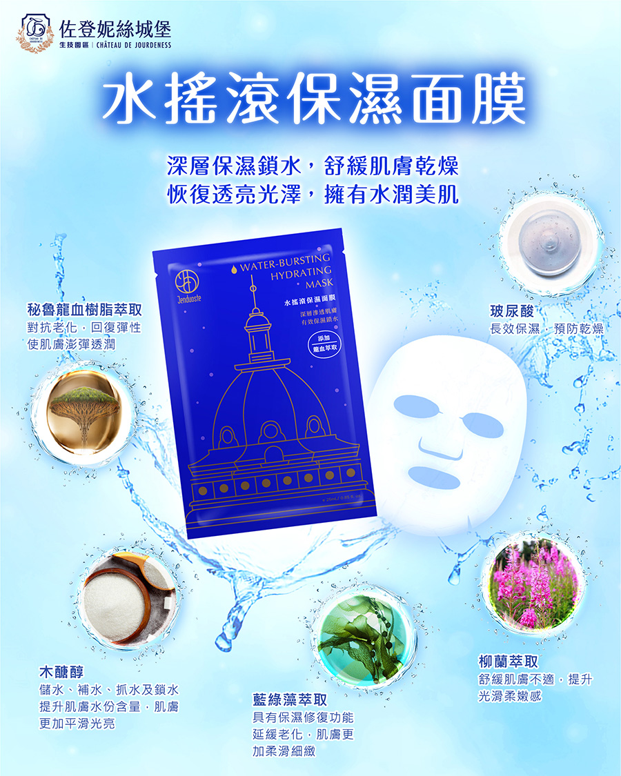 主要成分:龍血萃取、玻尿酸、木醣醇、藍綠藻萃取、柳蘭萃取