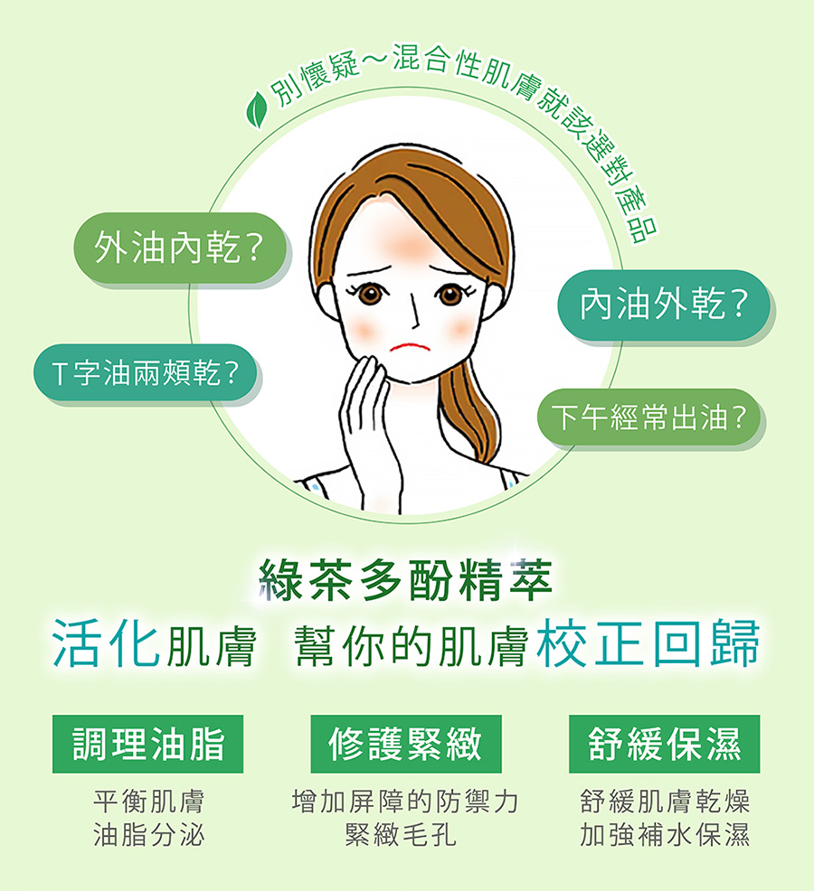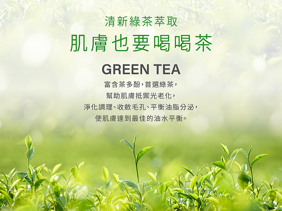 ★綠茶萃取x小黃瓜萃取x複方保濕因子 深層保濕