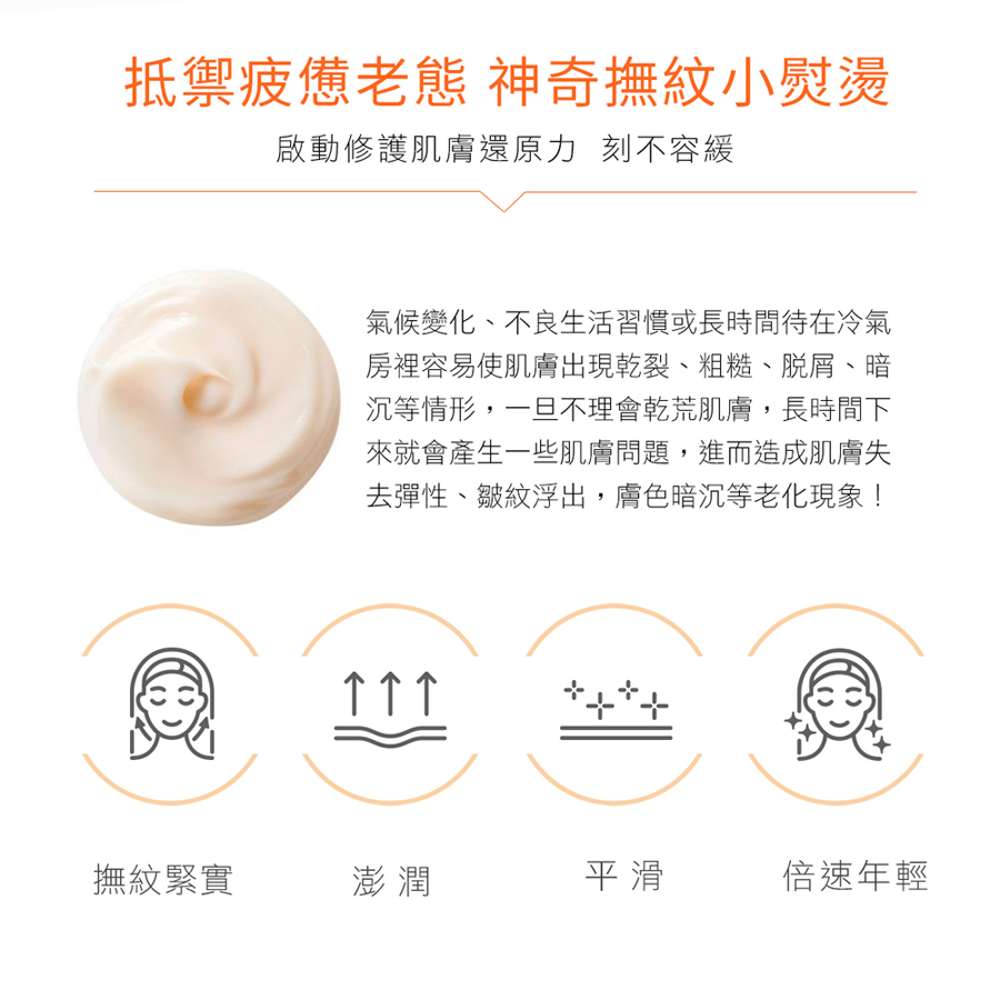 用途:賦活肌膚、淡化皺紋,肌膚水嫩緊緻有光澤。
