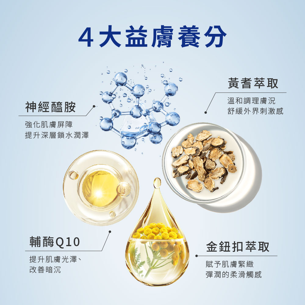 ★維他命E滋養,修護並強化肌膚屏障,夜間集中呵護