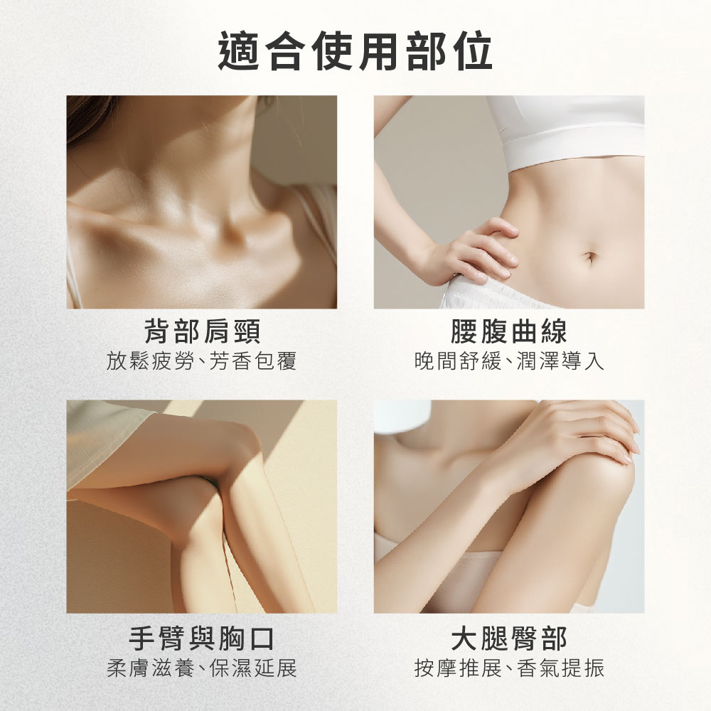 ★適合 按摩胸部、腹部、身體 或加入沐浴保養,兼具身心療癒