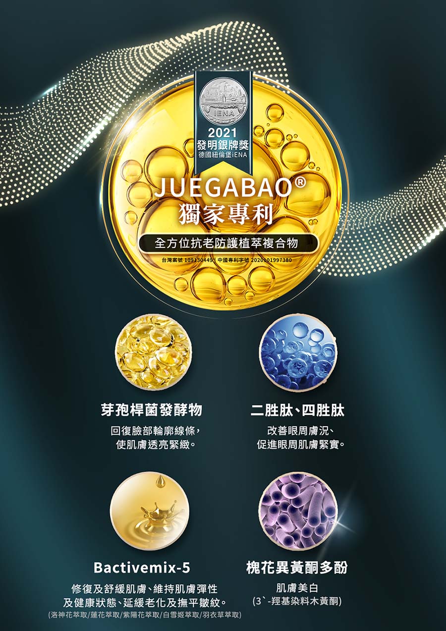 ★獨家專利「JUEGABAO」-多種植萃成分及胜肽複合