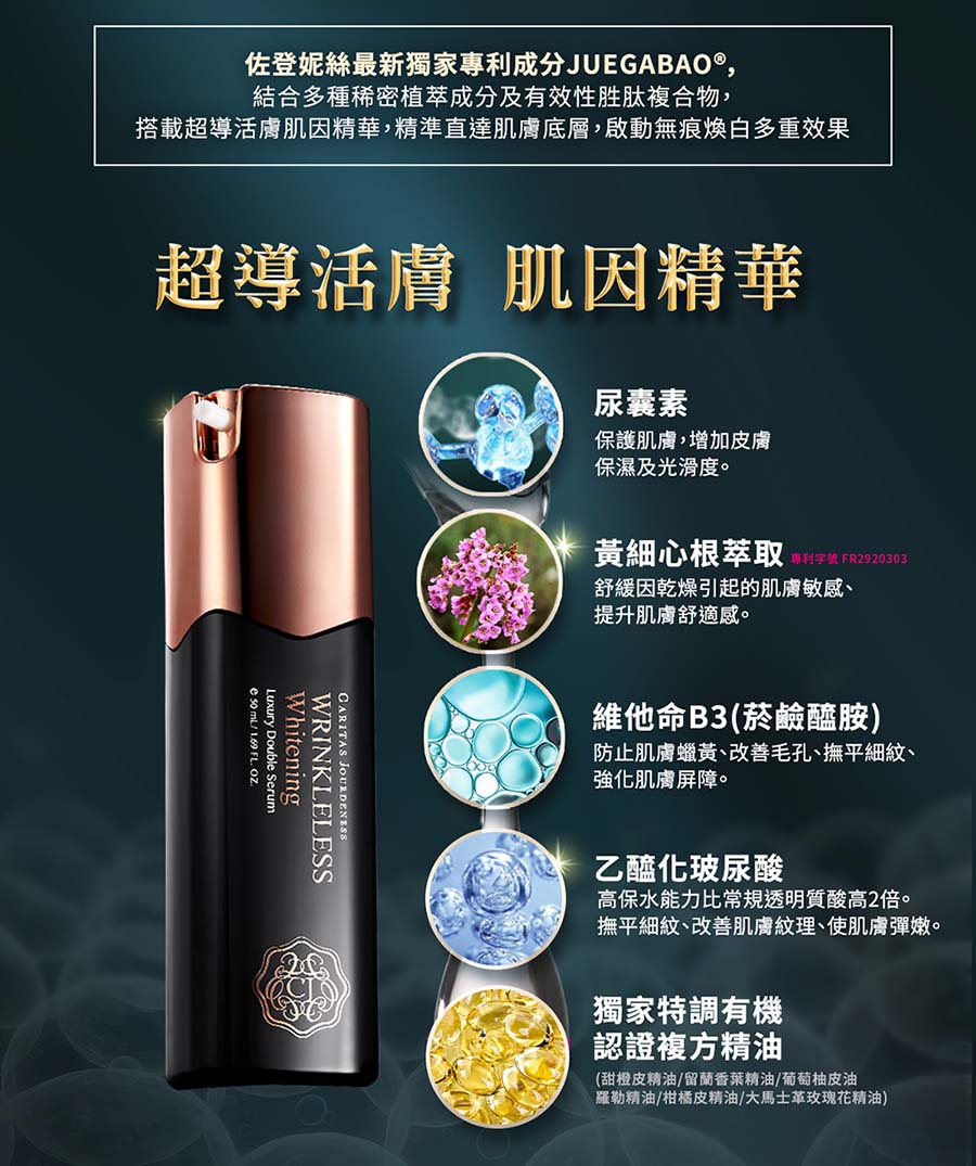 用途:淡化細紋,改善黯沉肌,使肌膚淨白柔嫩