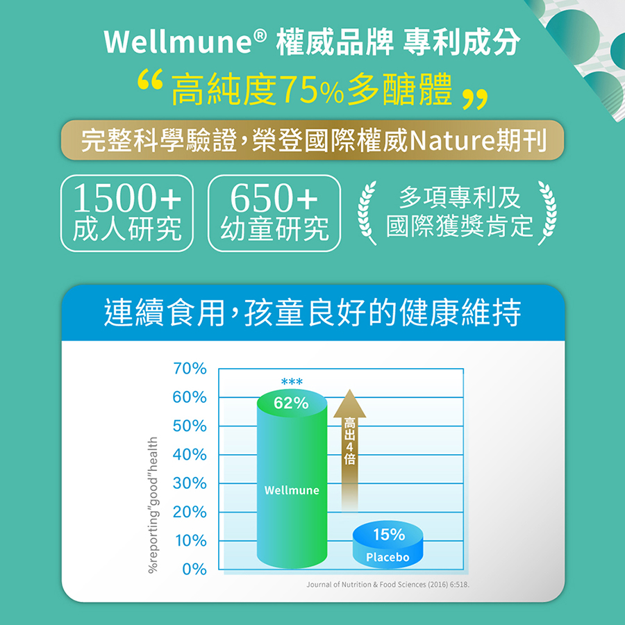 ★Wellmune® 酵母β-聚葡萄糖達75%高濃度