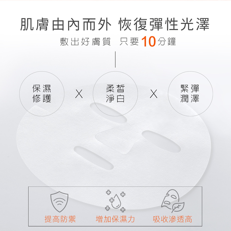 用法:清潔臉部肌膚後取出面膜,敷貼於全臉並依據臉型調整最適位置後輕壓撫平,靜待10~15分鐘後取下,輕拍吸收即可,建議每週使用2~3次。