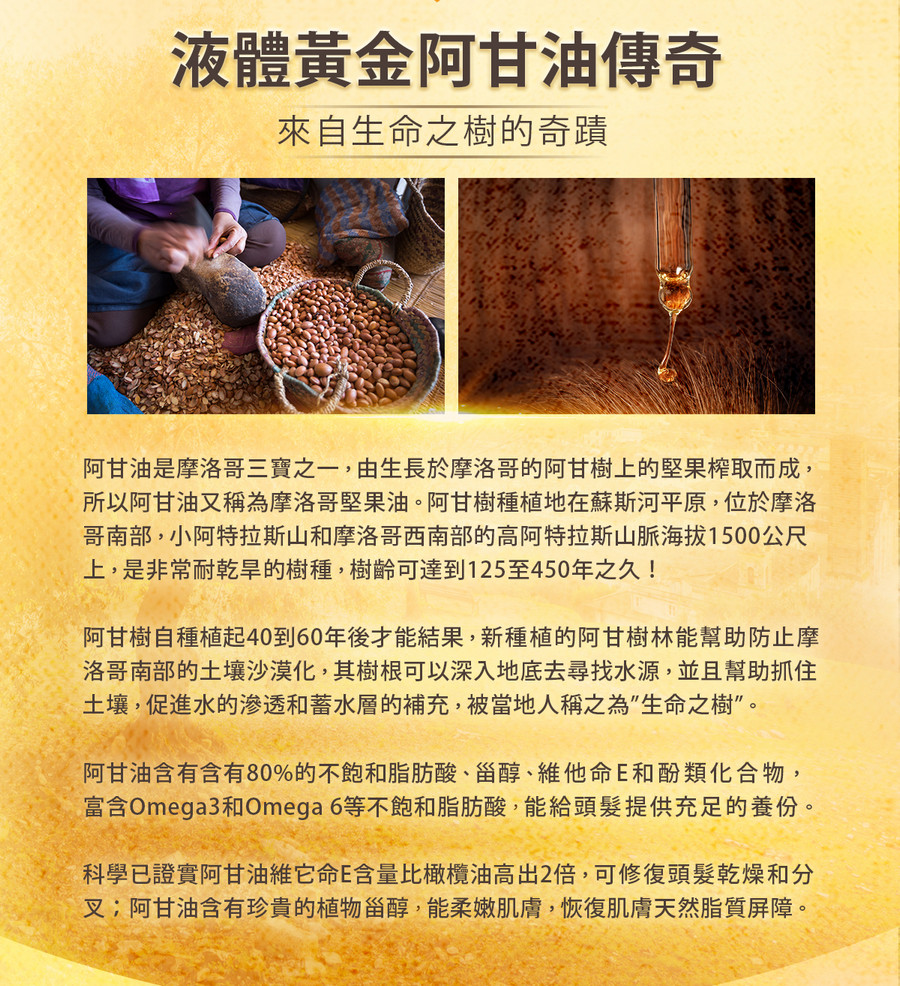 ★富含摩洛哥阿甘油 可滋養修護乾燥及分叉毛髮