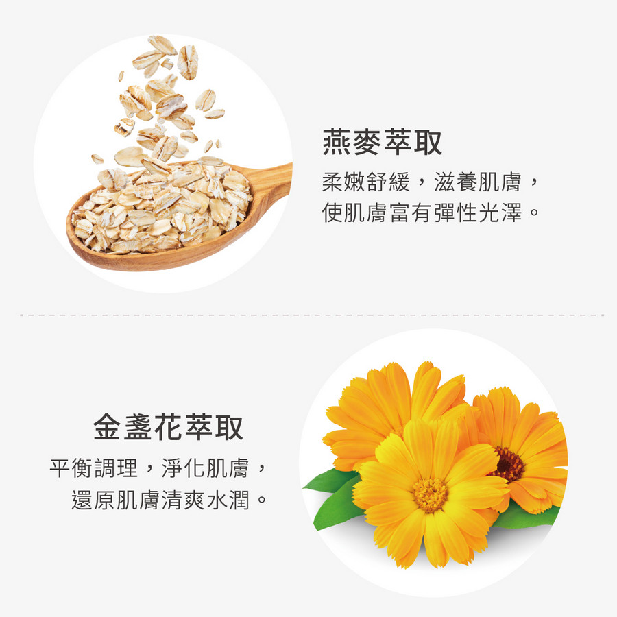 ★添加燕麥萃取 使肌膚常保彈性光澤